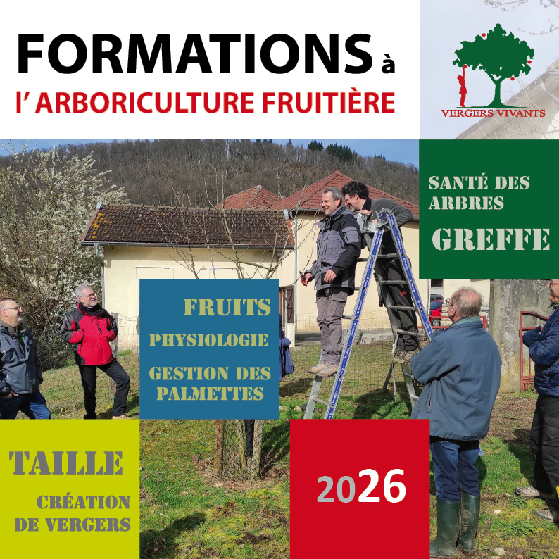 | Date | Samedi 14 février 2026 (9h à 16h30) : Pratique de la taille d’entretien Samedi 28 février 2026 (9h à 16h30) : Pratique de la taille de formation et de plantation Samedi 25 mai 2026 (8h30 à 11h45) : Taille en vert / éclaircissage Compléments théoriques généraux Samedi 5 septembre 2026 (8h30 à 11h45) : Création de vergers, les fruits |